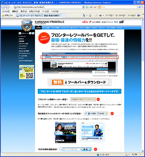 オフィシャルスポンサーであるニフティ株式会社の協力によって、インターネットエクスプローラーで使用するフロンターレ仕様のツールバーをリニューアルしました。
