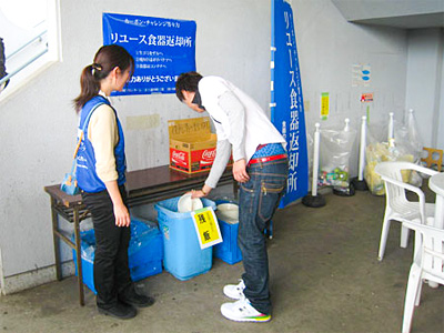 ⇒川崎市、富士通川崎工場、(財)川崎市公園緑地協会と川崎フロンターレ協働による場内売店でのリユース食器使用による食事提供。食器の100%回収目標。
