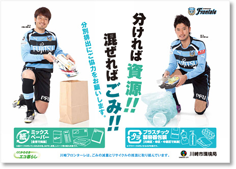 川崎フロンターレでは、川崎市環境局が製作する「ミックスペーパー・プラスチック製容器包装分別収集フォローアップポスター」に、当クラブ所属選手が採用されましたので、お知らせ致します。