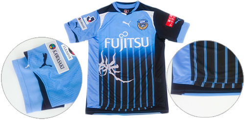 スポンサーマーク(胸・背中・左袖)、Jリーグマーク、ホームタウン(KAWASAKI)マーク、FOOTBALL TOGETHERマーク