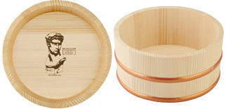 ※「花束」ならぬ「”フロ”桶」贈呈(テルマエ・ロマエ特製ヒノキ桶使用)
