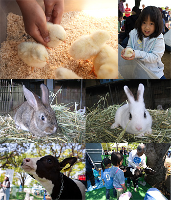 「ヒヨコ&ウサギ&子牛ふれあい」 協力:福田牧場