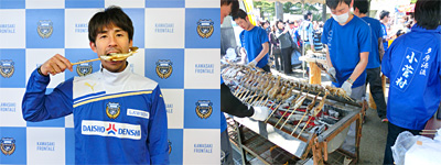 また、家族ぐるみの付き合いで有名な川崎フロンターレらしく柴崎選手のお父さんになんと遠路はるばる長崎からファン感に来場いただき、ご実家で採れる新鮮なイチゴを使った「コウセイ父のフレッシュイチゴジュース」を販売いただきます。さらに稲本選手の「イナのイナ庭うどん」、山瀬選手の「ヤマセのヤマメ塩焼き」など目玉盛りだくさん!もちろん日頃お世話になっているスポンサー関連の飲食売店も登場します。さあ、ファン感の1つの楽しみである「食」をつかさどる飲食売店にどうぞお越しください!