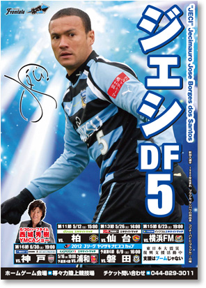 2012シーズンのスケジュールポスター第2弾(ジェシ選手バージョン)の完成を記念して、オフィシャルショップ「アズーロ・ネロ」、フロンターレのフットサル場「フロンタウンさぎぬま」、武蔵小杉駅前のケンタッキーフライドチキンインレット小杉店、溝ノ口駅前のケンタッキーフライドチキン溝ノ口店、東急ハンズ川崎店、フロンターレローソンの全6店舗にて、スケジュールポスタープレゼントキャンペーンを実施致しますので、お知らせ致します。