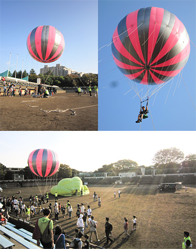 | 内容 | ◆ジャンピングバルーン体験 ヘリウムガスの入った大型バルーンにハーネスで固定して空中遊泳(1人乗り) ![]() |