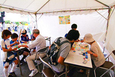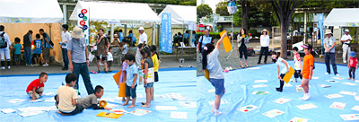 | 内容 | ◆エコライフをゲーム(環境すごろく)を楽しみながら学ぶ。 ◆川崎の環境 今・昔と題し、川崎市の環境の移り変わりを数枚のタペストリーで見る。 ![]() |