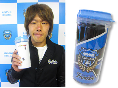 | 参加について | ◆コーヒー等については実費。フロンターレタンブラーはもちろん、マイカップ持参の方は20円引きで提供(通常店舗で行っている割引と同様)。 マイカップを利用した方にはなかはらマイカップ大作戦のスタンプカードを配布します。今回のエコカフェだけでなく、区内の協力店舗でマイカップを利用した場合にもスタンプをもらえます。スタンプが10個貯まると中原区役所オリジナルロジーちゃんエコ箸セットをプレゼントします。 フロンターレタンブラー持参で20円引き! |