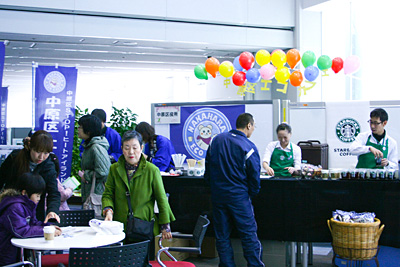 スターバックコーヒーによるオープンカフェを開催し、マイカップの使用の啓発を行う。また、6月から区役所が区内協力店舗と連携して進めるなかはらマイカップ大作戦を同時に行う