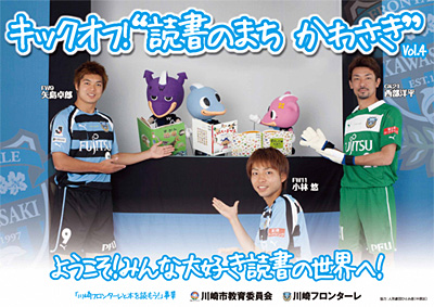 川崎フロンターレでは、今年度も川崎市教育委員会と協働して、フロンターレの選手やマスコットキャラクターを使用した、川崎市内での読書を通じた豊かなまちづくりのための読書推奨キャンペーン事業「川崎フロンターレと本を読もう!」を実施致します。