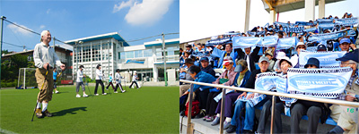 ポールウォーキングは、ポールを持って歩く事で正しい姿勢となり、通常のウォーキングより運動効果が20%以上アップします。多摩川河川敷で簡単に歩き方の講義と練習を行い、等々力競技場まで(約3.5km)をウォーキングします。その後は川崎フロンターレ対コンサドーレ札幌戦を観戦して盛り上がろう!という企画です。