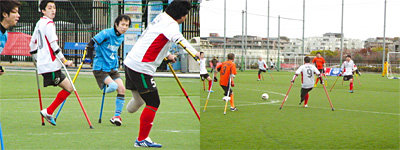 主に上肢、下肢の切断障害を持った選手がプレーするサッカー。