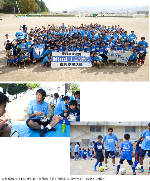 川崎フロンターレでは、東日本大震災の被災地の1つである岩手県陸前高田市の公立小学校9校に「川崎フロンターレ算数ドリル(上巻)」を寄付させていただいた縁で陸前高田市との交流を継続しています。昨年に引き続き、川崎フロンターレ選手会主催による「第2回陸前高田サッカー教室」を開催することとなりましたので、お知らせ致します。