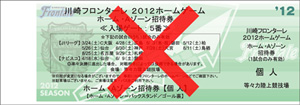 | ◇後援会特典チケット 「使用できません」 ![]() ※「後援会特典チケット」とは、川崎フロンターレ後援会の入会特典としてお渡しする「ホーム・Aゾーン招待券」(緑色)です。対象試合はこちらの「お知らせ」をご覧下さい。 |