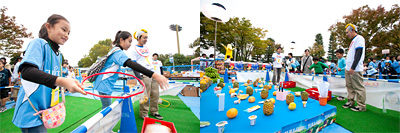 | Doleランド・秋企画① | ◇Dole輪投げ 陳列されたドール商品に見事、輪を通すことができれば、その商品をプレゼント。 <人数>人数制限なし(年齢制限なし)※賞品がなくなり次第終了 <参加方法・ルール>アトラクションチケット3枚必要、1人2投げ <賞品>スイカ、バナナ、パイン、オレンジ、グレープフルーツ、パパイヤ、ドラゴンフルーツ、パプリカ、セロリ、ブロッコリーなど ※会場内で「アトラクションチケット販売所」にてチケット購入(後援会員3枚100円、一般1枚50円) ![]() |