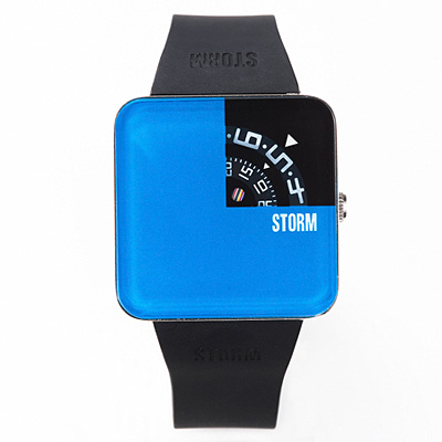 まずは「dinosアズ☆ネロ」の得意ジャンルの時計です!今回のご紹介は1989 年に英・ロンドンで誕生し現在イギリスで大人気のブランド、「ストーム」。スクアレックスは時刻が書かれたディスクが回転し、角型ケースの右上にある矢印部分で外側の数字が時を、内側の数字が分を表示します。また中央に近い丸窓からマルチカラーが動き時計が動いていることを確認できます。