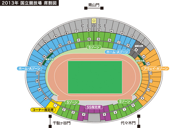 ※「SS指定席」「Sゾーン」「コーナー指定席」および「ホーム・Aゾーン」の一部での鳴り物の使用、立ち上がっての応援、大旗振り等の応援活動は禁止されております。応援ゾーンの詳細は2月4日掲載予定の「お知らせ」をご覧ください。
