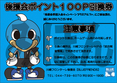 ◇後援会特典チケット ※「後援会特典チケット」とは、川崎フロンターレ後援会の入会特典としてお渡しする「ホーム・Aゾーン招待券」(緑色)です。対象試合はこちらの「お知らせ」をご覧下さい。 |