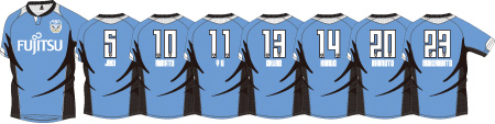 ![]() サイズ・価格: Jr.サイズ(110/130/150):3,780円(税込) 大人サイズ(S/M/L/LL):4,090円(税込) 対応選手:5 ジェシ/10 レナト/11 小林悠/13 大久保嘉人/14 中村憲剛/20 稲本潤一/23 登里享平 ※その他新商品詳細は「3/9新商品のお知らせ」をご覧ください。 |