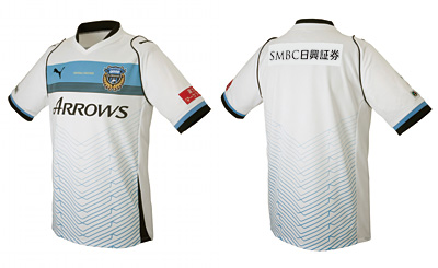 スポンサーマーク(胸・背中・左袖)、Jリーグマーク、ホームタウン(KAWASAKI)マーク、FOOTBALL TOGETHERマーク