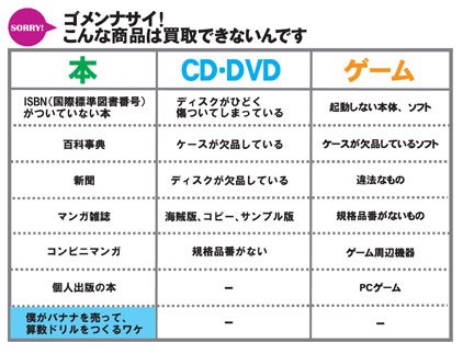 | 内容 | <古本でキフロンターレ2012年実績報告> 14,717点が集まりました。皆さま、ご協力ありがとうございます。 ゲームも対象となっております! 古いゲームやソフトは買い取れない場合があります。ご不明の場合は株式会社バリューブックス0120-826-295までお問い合せください。 【古本でキフロンターレ】 〜古本で復興支援〜 ご家庭や職場で不要になった書籍、DVD、ゲームを集め、そこで集まった古本などをバリューブックスに買い取ってもらい、その買取金額を川崎フロンターレに寄付頂きます。 寄付頂いた金額は、Mind-1ニッポンプロジェクトの復興支援活動の活動費に充て、より直接的に被災者支援の活動を行っていくための資金とします。 <古本・DVD・ゲームの回収場所> ①フロンパークグッズ売店 ②ホームゴール裏グッズ売店 ③Gゾーングッズ売店 ![]() ISBN(国際標準図書番号) ![]() ![]() ぜひ、皆さんご協力よろしくお願い致します。 |