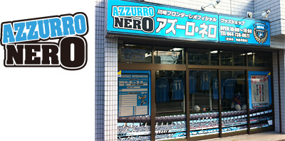 グッズ購入はアズネロでもOK!オフィシャルショップ「アズーロ・ネロ」は等々力競技場からすぐですので、試合の行き帰りにもぜひお立ち寄りください。