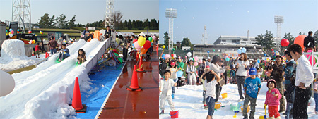 | 企画④ | ◇「おフロとスキー」ランド開園 フロンパークにて「おフロ」と「スキー」にまつわるアトラクションを開催! 「おフロコーナー」 フロンパークに足湯、手湯が登場!