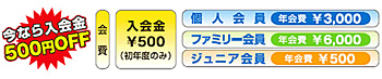 個人会員(登録人数:1名) 3,000円 ファミリー会員(登録人数:同一住所の方で2名〜4名) 6,000円 ジュニア会員(登録人数:小中学生1名) 500円 ●会員特典 フロンターレの試合を観戦できる「ホーム・Aゾーン招待チケット」など、お得な特典盛りだくさんです。 特典の詳細は当日、後援会テントのスタッフにお尋ねください! ●「入会金無料キャンペーン」やります!