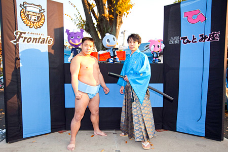 等々力陸上競技場正面前の「川崎フロンパーク」と銘打ったイベント広場では、今シーズンも川崎市唯一の相撲部屋「春日山部屋の川崎ちゃんこ」、川崎市在住日系ブラジル人の皆さんによる「ブラジルキッチン」、創業昭和33年川崎生まれ川崎育ちの川崎が全国に誇るとんかつ名店「とんかつ和幸の選手セレクト弁当」、川崎大師名物「松屋総本店のとんとこ飴」、川崎銘菓「堂本製菓の大師巻」、エバラpresents「KAWASAKI CURRY STADIUM」、そして物販PRとして「川崎市 藤子・F・不二雄ミュージアムPRブース」と、川崎市に縁ある様々なお店が出店して参りました。