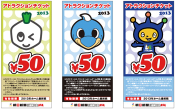 | 参加方法 | アトラクションチケットが必要 1枚50円 ※2013年後援会員は3枚で100円 ※アトラクションチケットは当日販売も行います。 |