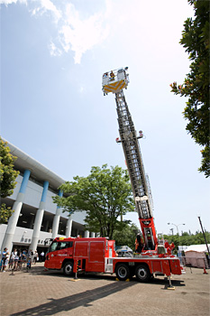 | 内容① | ◆ファン感会場を一望できます!「はしご車乗車体験コーナー」 【事前申込!】 ![]() 中原消防署の全面協力により例年開催している人気コーナー、はしご車乗車体験を開催します。普段では決して味わえない非日常の空間を味わってみませんか? 消防士になりきって等々力陸上競技場、多摩川を空から見渡そう! ※事前申込制!!詳細はこちら ※万が一、当日キャンセルのお客様が出た場合は、急遽追加募集する場合がございます。 |