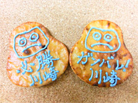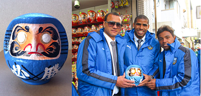 川崎大師のだるま販売店の小田切商店に今年も協力していただき、「川崎必勝ダルマ」を販売。2013シーズンのユニフォームを身にまとったダルマをこの機会にぜひお求めください! 協力:小田切商店、喜久千代ベーカリー、雷神堂