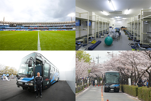 2013、2014シーズン限定の仮設メインスタンドのロッカールーム、選手バスに加え、ピッチも見学できるツアー。この機会に試合に臨む選手の気分を味わおう!!