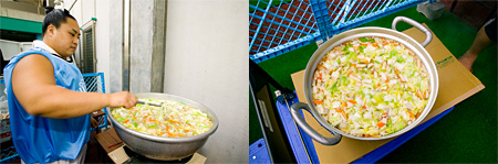 川崎コリアタウンエリアの川崎市川崎区桜本から満を持してついに登場! クラブスタッフも下鼓を打つ絶品牛スジ煮込みをぜひご賞味あれ!!野菜も入って女性にも嬉しい仕上がり!もちろんビールのおつまみにも最高です!! ・川崎コリアタウン「カネダ食品の牛スジ煮込み」「500円」 ◆春日山部屋の川崎ちゃんこ ![]() ・力塩ちゃんこ「500円」 春日山部屋力士が出張し、特製ちゃんこを調理販売! ◆ブラジルキッチン ![]() ・シュラスコ「400円」 ・ブラジルソーセージ「300円」 ・フェジョアーダ「500円」 ◆エバラ presents KAWASAKI CURRY STADIUM ![]() ・川崎野菜キーマカレー「500円」 ・横濱舶来亭カレー(中辛)「400円」 ・川崎野菜キムチスープ「300円」 ◆スウィーティオパインスティック ![]() ・スウィーティオパインスティック「200円」 ※バナナ農園の出荷の関係で、「かわさき応援バナナのチョコバナナ」はお休みと させていただきます。 ◆日替わりキッチンカー5店舗出店!