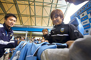 オフィシャル携帯サイト「モバイルフロンターレ」の会員の皆様限定で、「あなたのマンオブザマッチを採点しよう!」と題し、出場した選手たちをあなたが採点する「採点プリーズ」企画を実施。あなたの寸評がモバフロに掲載されるかも!?