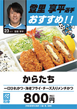 | 内容 | ≪飲食売店≫ ◆山田うどん ※ 今シーズンは仮設メインスタンドで営業します。 今シーズンから新登場!!「肉うどん」:500円 ![]() うどん、そば類、丼物類、アルコール類、ソフトドリンク、他 ◆かしわや ![]() 今シーズンから新登場!!「とどろき丼」:600円 ※ 時期によって販売内容が変わります!!第2弾はかわり天丼 カツサンド、軽食、菓子類、アルコール類、ソフトドリンク類 ◆ローソン 弁当、菓子類、アルコール類、ソフトドリンク類 他 ◆ファンキーズ ホットドック類、アルコール類、ソフトドリンク類 ◆等々力市場 【とんかつ和幸】 ・選手セレクト弁当:各800円 中村憲剛選手おススメひれロース弁当 ![]() 西部洋平選手おススメなでしこ ![]() 登里享平選手おススメからたち ・ひれ勝つサンド(レギュラー):600円 ・ひれ勝つサンド(ハーフ):300円 ※今シーズンもフロンパークに川崎が誇るとんかつの名店「とんかつ和幸」販売店が登場! 【大平屋】 ・フロンターレドラ焼き:150円 ・とどろきまんじゅう:110円 など 【堂本製菓】 ・大師巻:500円 ・久助各種:400円 など 【マカデミア】 ・パリポリスティック:250円 ・カッププリン各種:270円 など 【松屋総本店】 ・川崎とんとこ飴:300円 ・せき止飴:300円 など 【美遊JAPAN】 ・あんドーナッツ:150円 ・揚餅:350円 など 【麦】 ・しっとり食パン:300円 ・ブラウニー:250円 など 【住吉】 ・久寿餅:300円 ・カレーカシューナッツ(袋):180円 など |
