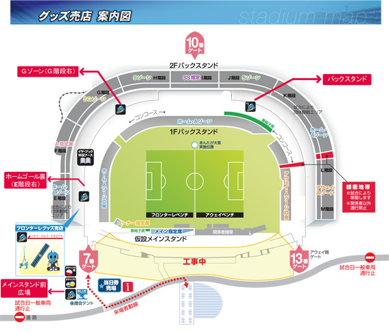 | 加点場所 | ◇後援会テント(メインスタンド前広場) 15:30〜試合終了後30分 ◇バックスタンドコンコース(10番ゲート付近J階段下) 16:30〜試合終了後15分 |