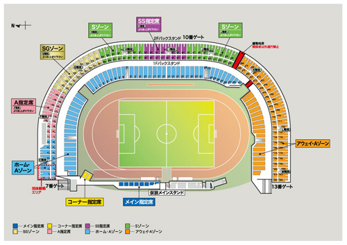 また、前売チケットの販売状況を踏まえ、K階段上2階席はすべてアウェイ・Aゾーンとさせていただきますので、ご了承ください。