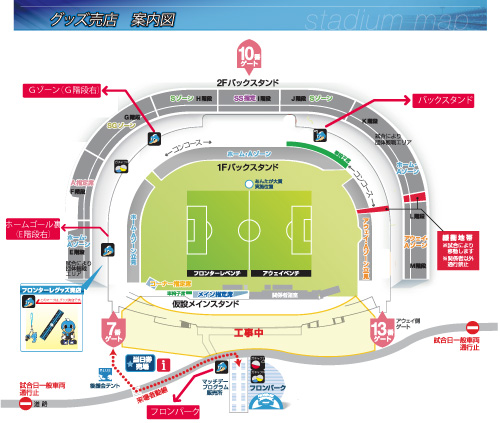 | 加点場所 | ◇後援会テント(メインスタンド前広場) 15:00〜試合終了後30分 ◇バックスタンドコンコース(10番ゲート付近J階段下) 16:00〜試合終了後15分 |
