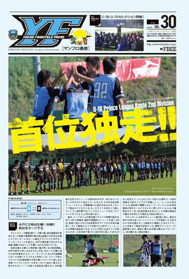 川崎フロンターレの「アカデミー(各育成カテゴリー、各スクール、普及活動)」の情報に特化した、フロンターレサポーター向けの専門誌「ヤンフロ通信」の第30号が発行されましたので、お知らせいたします。