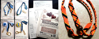 | 「Mind-1ニッポン復興支援販売ブース」 | 被災者の自立復興をサポートする「気仙沼ミサンガプロジェクト」。このミサンガの売上金から材料費を除いた全額が製作者の方に届きます。