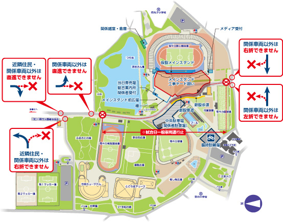 川崎フロンターレ主管のホームゲーム開催日において、来場者の安全への配慮から、2013シーズンより引き続き等々力陸上競技場正面の道路は一般車両通行止になりますのでお知らせいたします。