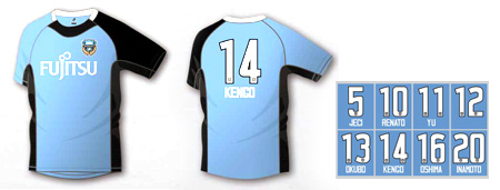 【対応選手】5ジェシ/10レナト/11小林悠/12(サポーター番号)/13大久保嘉人/14中村憲剛/16大島僚太/20稲本潤一 ◇海豚愛Tシャツ