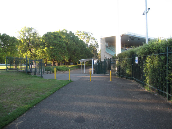 「オコネル・ストリート」の無料シャトルバス乗り場から、スタジアムのある公園内に向かって進んでください(プールを右手に見ながら進むことになります)。下記写真のとおりの道順で進めば、ゲートJに到着します。