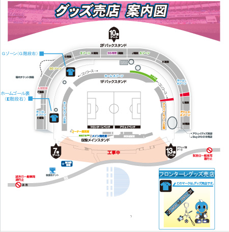| 場所 | ◇メインスタンド前広場内後援会テント付近 ◇ホームゴール裏(E階段右) ◇Gゾーン(G階段右) |
