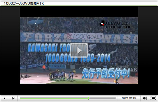 川崎フロンターレは、Jリーグに参入した1999年から2014年J1リーグ第5節名古屋グランパス戦での大久保嘉人選手のゴールにより、J1・J2リーグ戦通算1000ゴールを達成しました。これを記念して、記念DVDの販売を実施いたします。一般販売に先駆けて、オフィシャルWEBショップにて先行予約販売を実施しますので、ぜひご利用ください。
