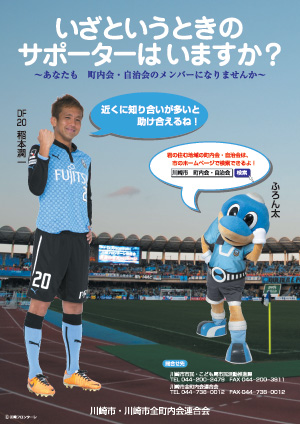 この度、川崎市市民・こども局が製作する町内会・自治会活動啓発ポスター&チラシに、当クラブの稲本潤一選手が採用されましたので、お知らせいたします。