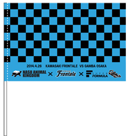 スーパーフォーミュラなどモータースポーツのフィニッシュラインで振られる旗である、チェッカーフラッグ。フロンターレカラーで仕上げ、今年は選手花束贈呈で登場する那須どうぶつ王国のケヅメリクガメもデザインに取り入れた、フロンターレオリジナルバージョンのチェッカーフラッグです。(サイズは、通常販売しているフラッグのMサイズと同様。)