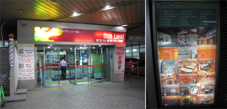 地上階。多機能サウナのみにとどまらないチムジルバン(スーパー銭湯の類)施設です。入場料7,000~9,000Won。営業時間=24時間