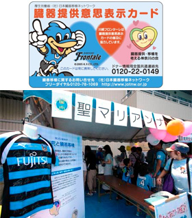 臓器提供意思表示カードの普及PRブースを設置いたします。アンケートに答えるとフロンターレグッズが当たる抽選会に参加できます。