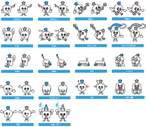 ◇今まで緑色であった頭頂部をフロンターレカラーに。また、足は今まで裸足でしたが、鮮やかな水色のラインが入ったシューズを履いた形にモデルチェンジします。